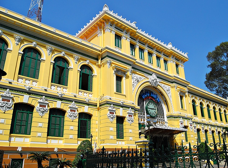Right next door to the cathedral is the Central Post Office, constructed between 1886 and 1891. This still-operating post office, which features a bright yellow exterior framed with white accents, is known for its distinctly French Colonial architecture, intricately designed marble floors, and looping arches. Amid the decidedly European touches hangs a large portrait of Ho Chi Minh at the end of the hall, reminding visitors that they are still, in fact, in Vietnam. Original oil paintings adorn the walls, which also feature two painted maps – one depicting the postal route from southern Vietnam to Cambodia and another outlining the local area. Travelers can visit the post office to purchase souvenirs, send postcards home, and visit the last remaining “public letter writer,” who has been translating letters into English, French, and Vietnamese for almost three decades. Nearly a nonagenarian, Duong Van Ngo has become a regular fixture here, setting up shop every morning as one of the few constants in an ever-evolving cityscape.